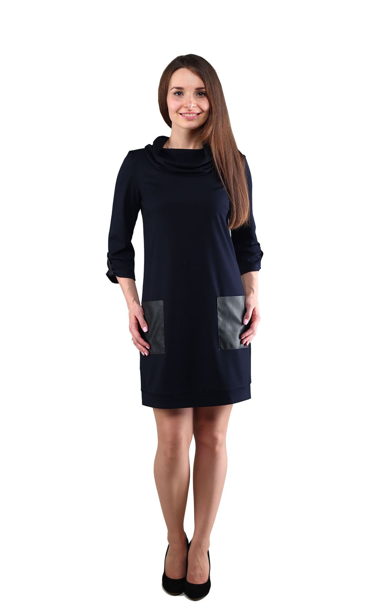 Платье из плотной вискозы с шерстью и карманами из искусственной кожи.