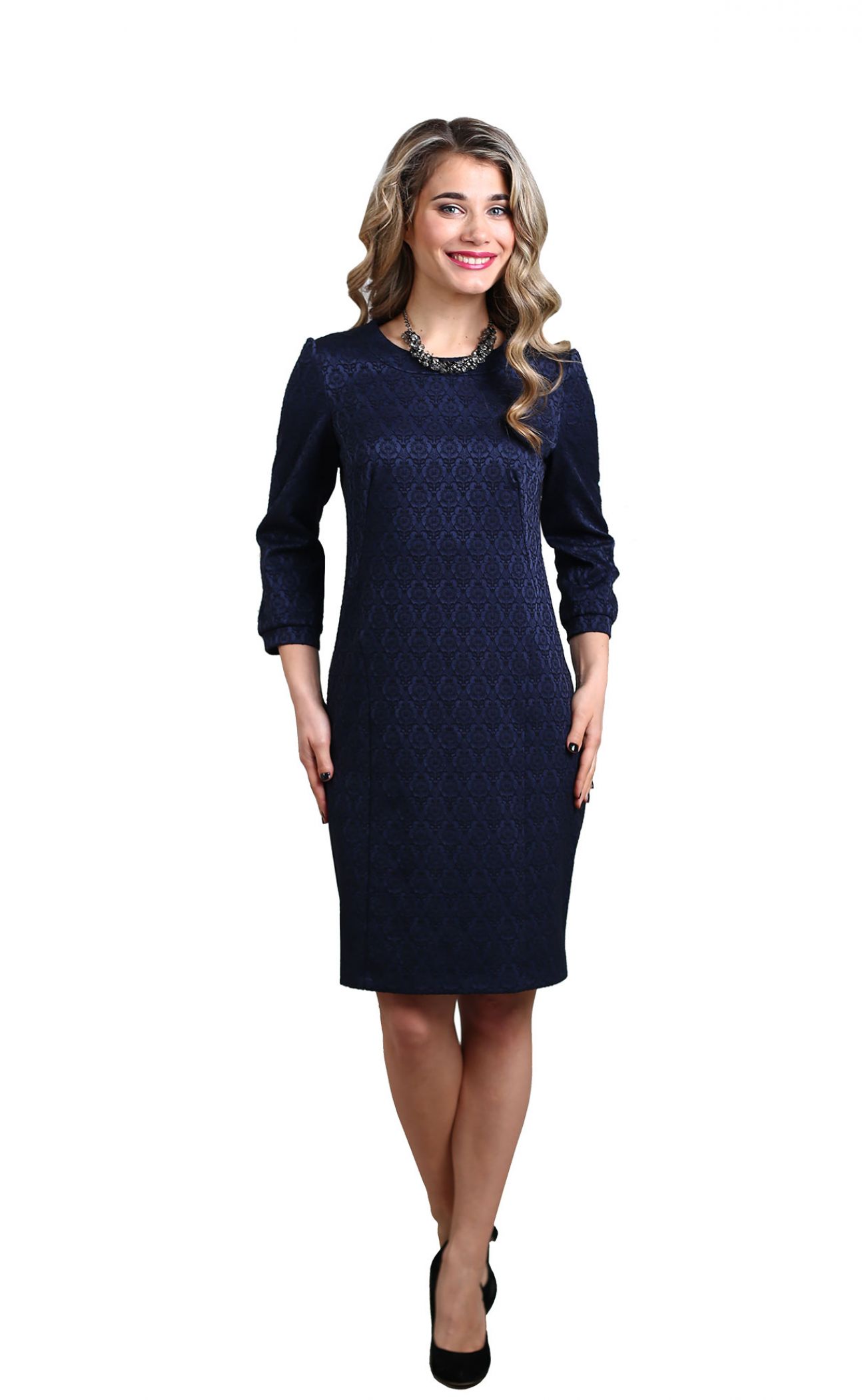 Платье из трикотажного полотна с рельефным рисунком, на спинке застежка на пуговицах.